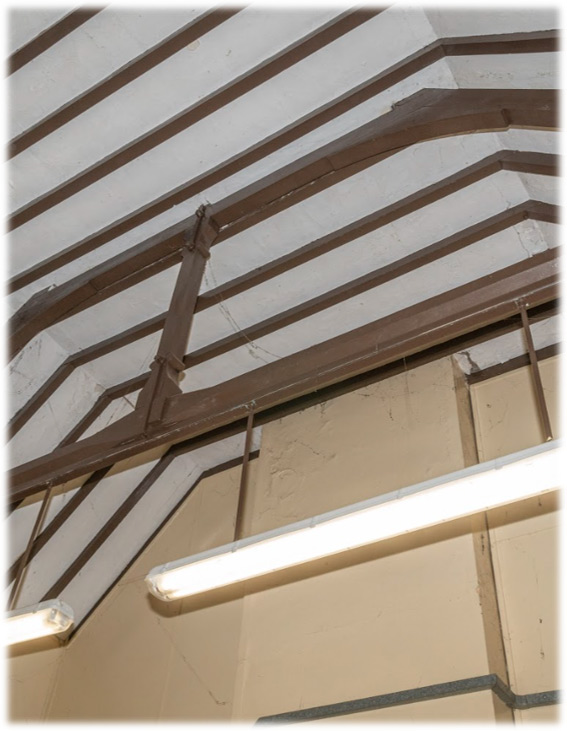 Strip-Lights Written by Sheldrake Editor on 25th October, 2022. Modern strip lights hang from a 19th-century wooden cross beam with a nicely detailed support post before restoration of the waiting room at Eynsford Station in Kent. Previous