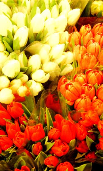 The Netherlands has been famous for its flowers ever since the tulip mania of the early 17th century, when fortunes were made and lost as speculators bid up the price of the rarest bulbs to unsustainable peaks. Later, the growing of tulips, hyacinths and other blooms which flourish in the sandy soils around Haarlem settled down and became a serious industry. Today the country is the largest flower exporter in the world. There are even plans to build a tunnel between Amsterdam airport and the huge flower auction at Aalsmeer to make the exporting of flowers easier. In Amsterdam, the main place to find flowers is the famous flower market on the Singel, behind the Munttoren. Even in winter, the market is a sea of cut flowers and flowering plants. Some overflow into the street, others can be found in covered stalls on boats in the canal. The market on the Singel is not the only flower market in the city, but it is the best known. Foreign visitors cluster to buy bulbs there as a memento of the vibrant colours with which the Amsterdammers like to brighten their northern skies.